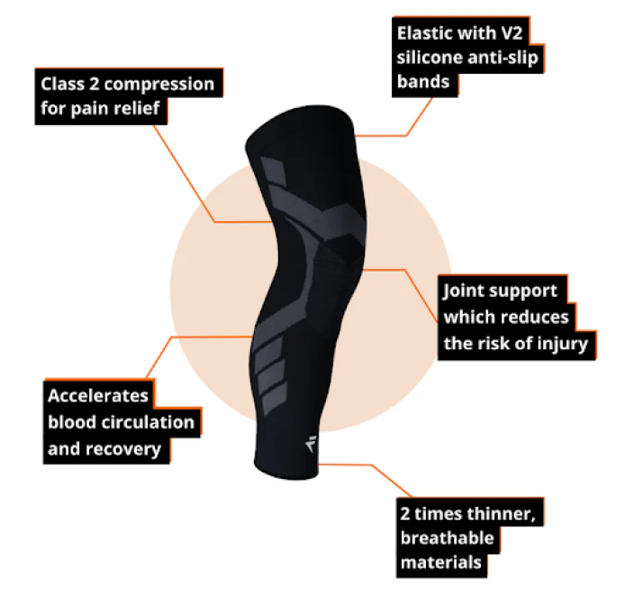 Most compression sleeves are meant to reduce swelling after the activity, not to support you during it. Some were too thin and flimsy to protect my knee. I tried them and still ended up in pain — also because they were pulling the hair and leaving a nasty rash. Most rolled down immediately upon moving my leg, unable to stay in place.